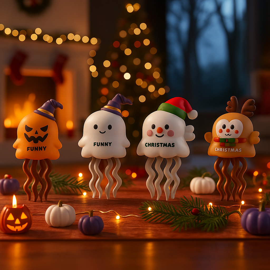 Varianten: Weihnachtsmann, Rentier, Geist, Kürbis