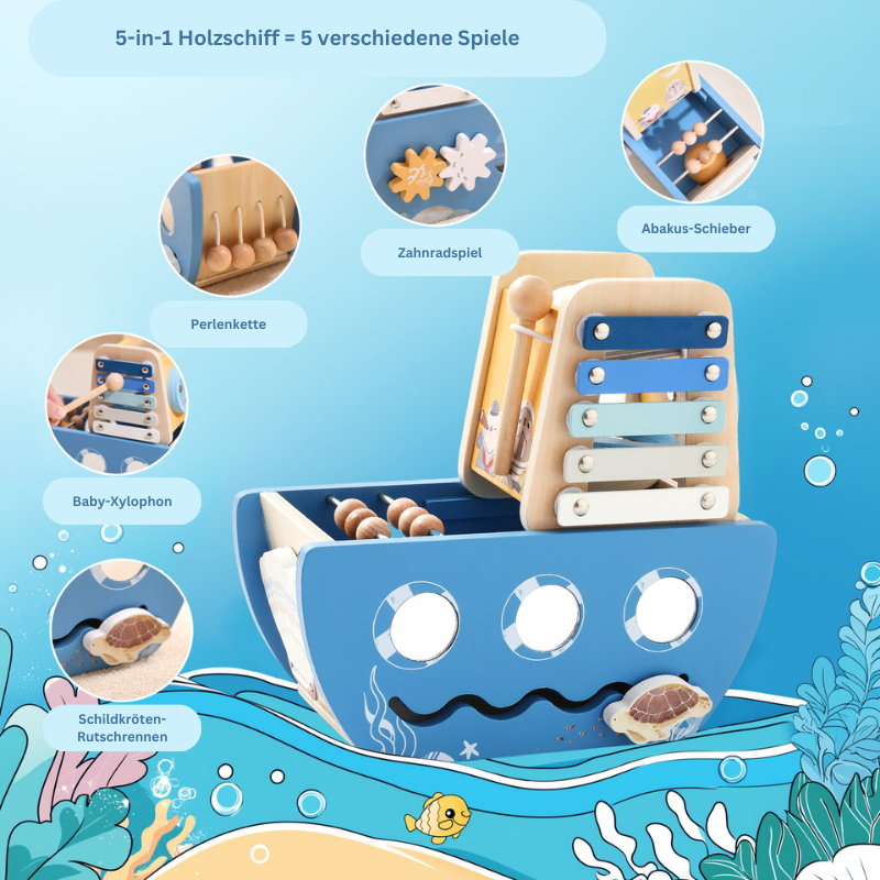 Montessori - Holzschiff 5-in-1 Spielzeugset