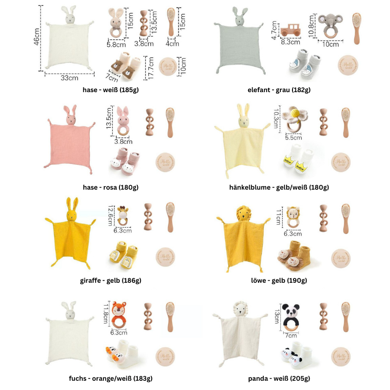 Dieses liebevoll zusammengestellte Neugeborenen-Geschenkset ist das ideale Willkommensgeschenk für kleine Erdenbürger. Es enthält eine sorgfältige Auswahl an hochwertigen, praktischen und stilvollen Babyartikeln, die sowohl Eltern als auch Babys erfreuen werden.
